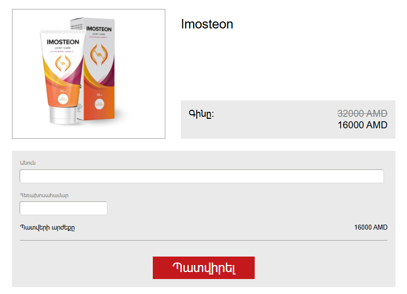 Imosteon Armenia: Գել հոդերի ցավազրկման համար! Գինը և կարծիքները