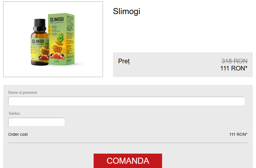 Picăturile Slimogi sunt un supliment natural pentru slăbit. Combinate cu o dietă nutritivă și exerciții fizice regulate, acestea ar arde grăsimile, ar reduce pofta de mâncare și ar crește energia.
